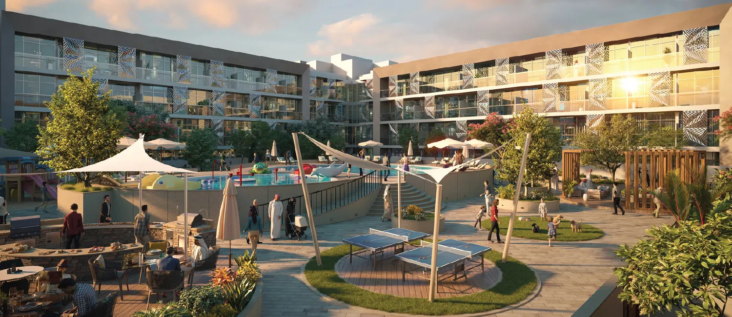 modern architecture and incomparable lifestyle. Following Abu Dhabi’s futuristic approach, these 3 Pearls-rated residential complexes is a blend of contemporariness and opulence within a perfectly planned functional design, where nature meets technology creating an eco-friendly community and a lifestyle of innovation. Spanning over an area of 110,029 sq. ft., Plaza incorporates a wide range of residential apartments and townhouses with full facilities in a strategic location connecting the main roads, surrounded by parks, schools, mosques, banks, and community retails, all of which are within walking distance. Being a high-end residential complex with Energy Efficient buildings is a